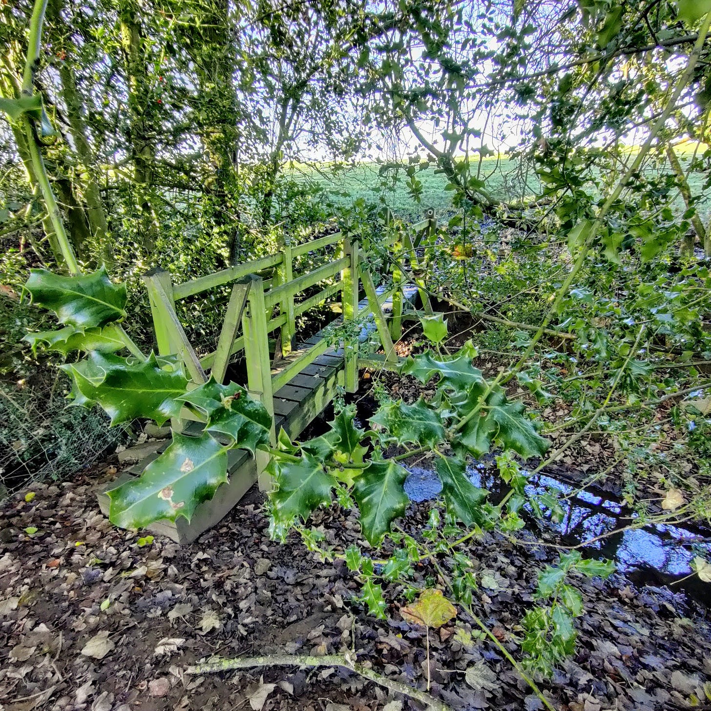 White egret, distinctive yellow legs like a hi-vis safety measure, flew up from the brook as I passed. Not sure what’s living in there[3], but it must’ve been appetising for the egret.